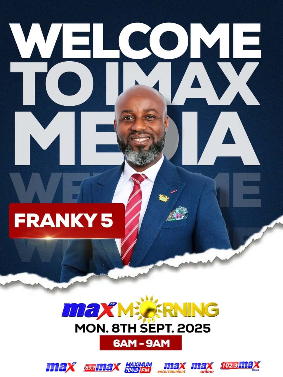 Celebrated radio and television personality Franky 5 has officially joined the iMAX Media Group and is set to light up the screens of Max TV as host of the station’s flagship morning show, MaxMorningLive, starting Monday, 8th September 2020, from 6 a.m. to 9 a.m.