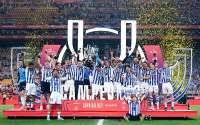 Real Sociedad edged Atletico Madrid 4-3 on penalties to win the Copa del Rey for a fourth time in the club 39;s history after a 2-2 draw in a gripping final on Saturday in Seville. After Alexander Sorloth and Julian Alvarez missed from the spot for Diego Simeone 39;s Atletico, Pablo Marin smashed home his kick to claim victory for the Basque side.