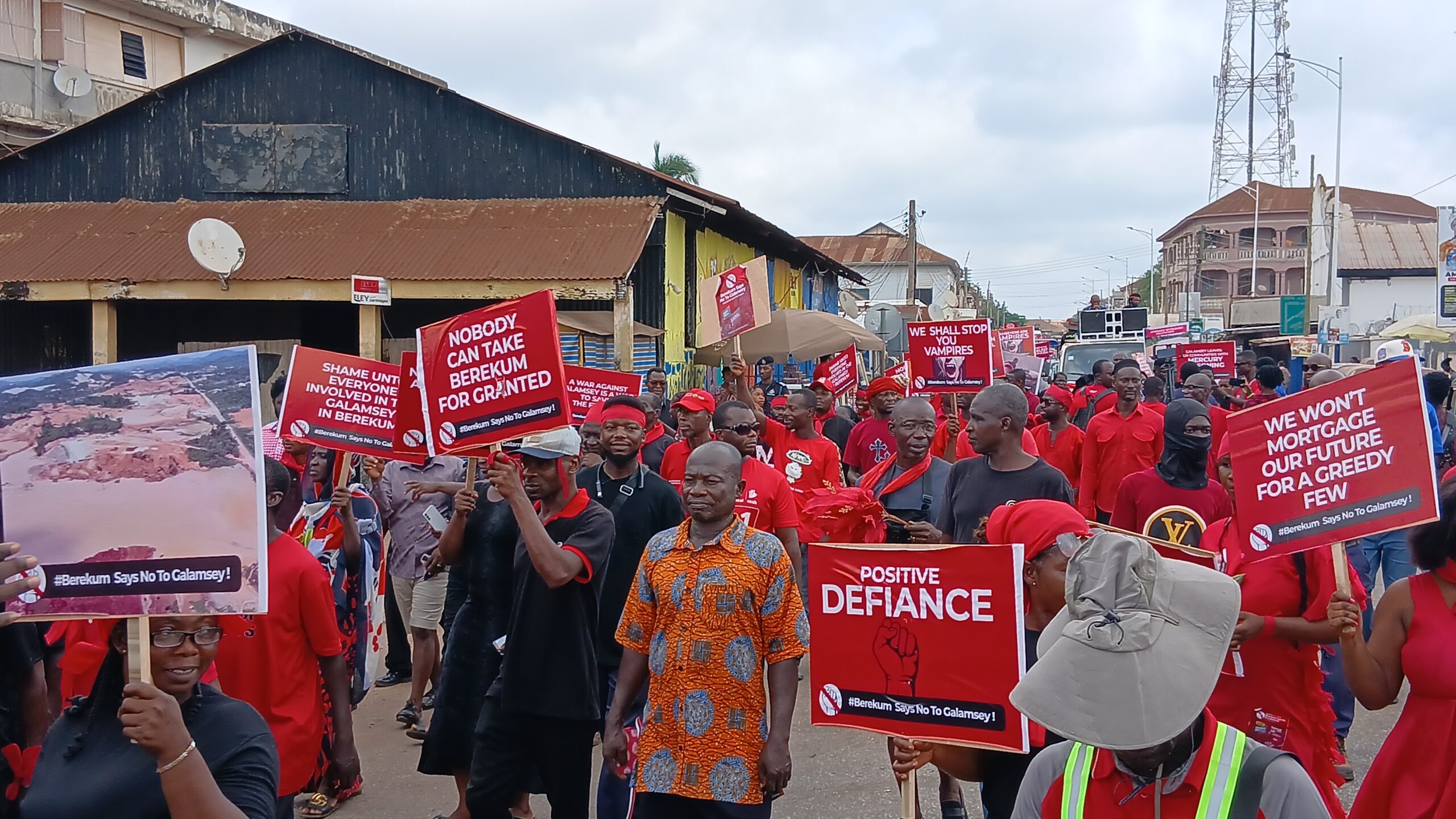 The demonstration took place on Thursday in Berekum, where participants marched through the town’s principal streets dressed in red and black. They called for an end to what they describe as the growing spread of unregulated mining in the area.